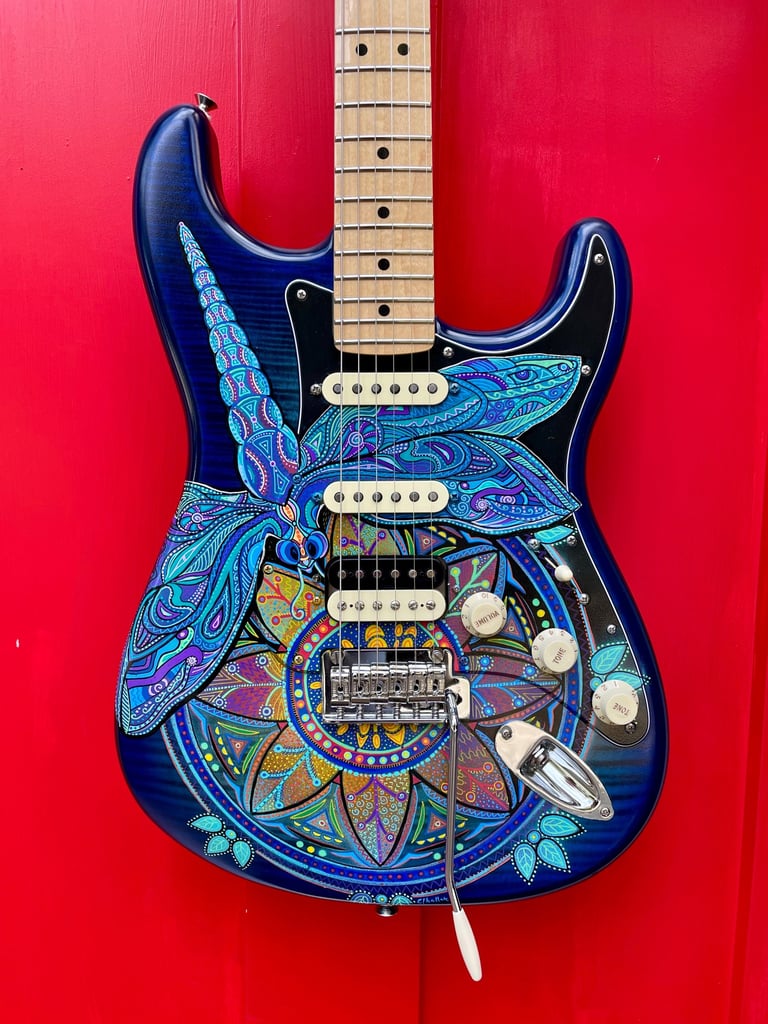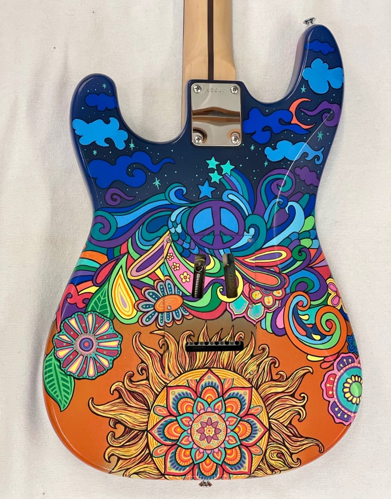 In addition to creating beautiful guitars, I have also donated hand-painted guitars to various charities that are signed by famous musicians to help raise funds for important causes.